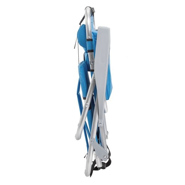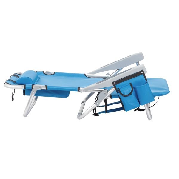 Get comfortable with this Folding beach Chair. It is an ideal solution for sitting and relaxing in comfort during outdoor activities. It is also a must-have for a sporting event, a picnic, a camping trip or even just to the backyard. The aluminum frame is not only light-weight, but also offers even greater sturdiness and stability to make it stand up to various conditions. In addition, the adjustable back with 5 positions to create better sitting feeling, and the extra storage space such as pouches on the back and side cup holder allow you to keeps the necessities right by your side. The beach chair is light-weight and easy to move so that it fits easily inside most vehicles for fast transport wherever you need.