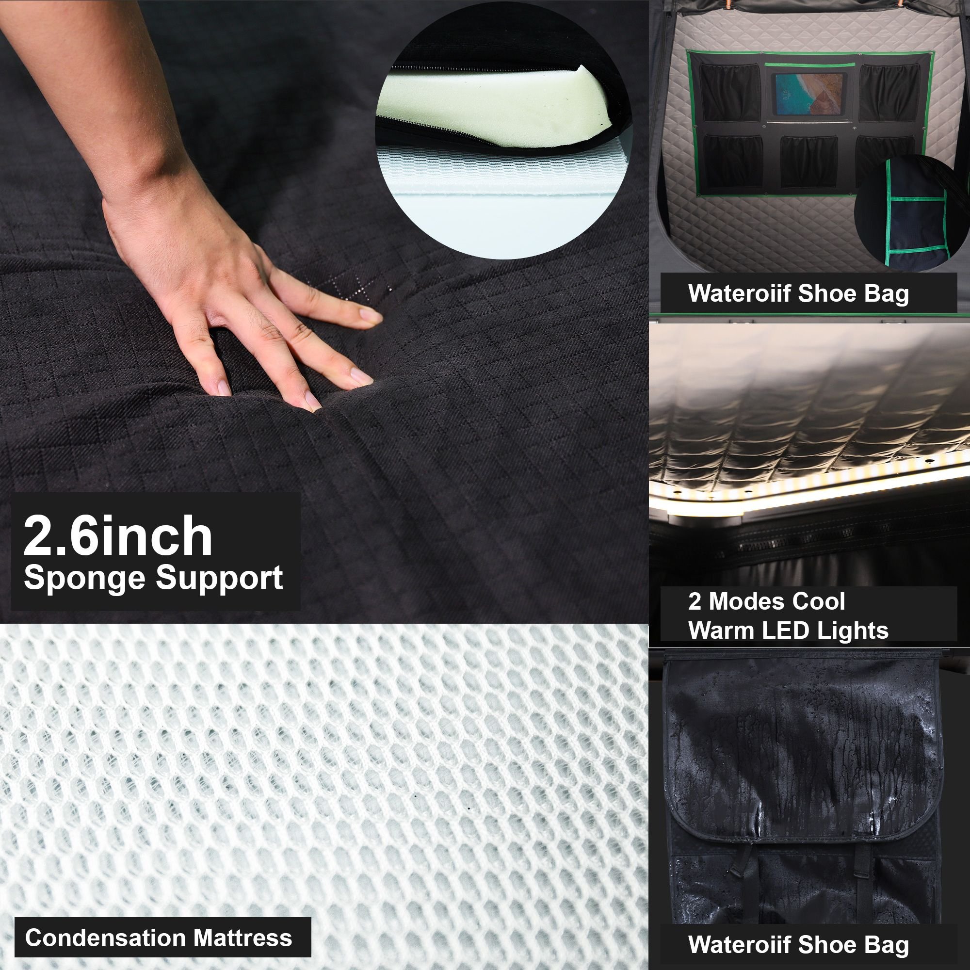 A ROOF TENT with an internal LED light