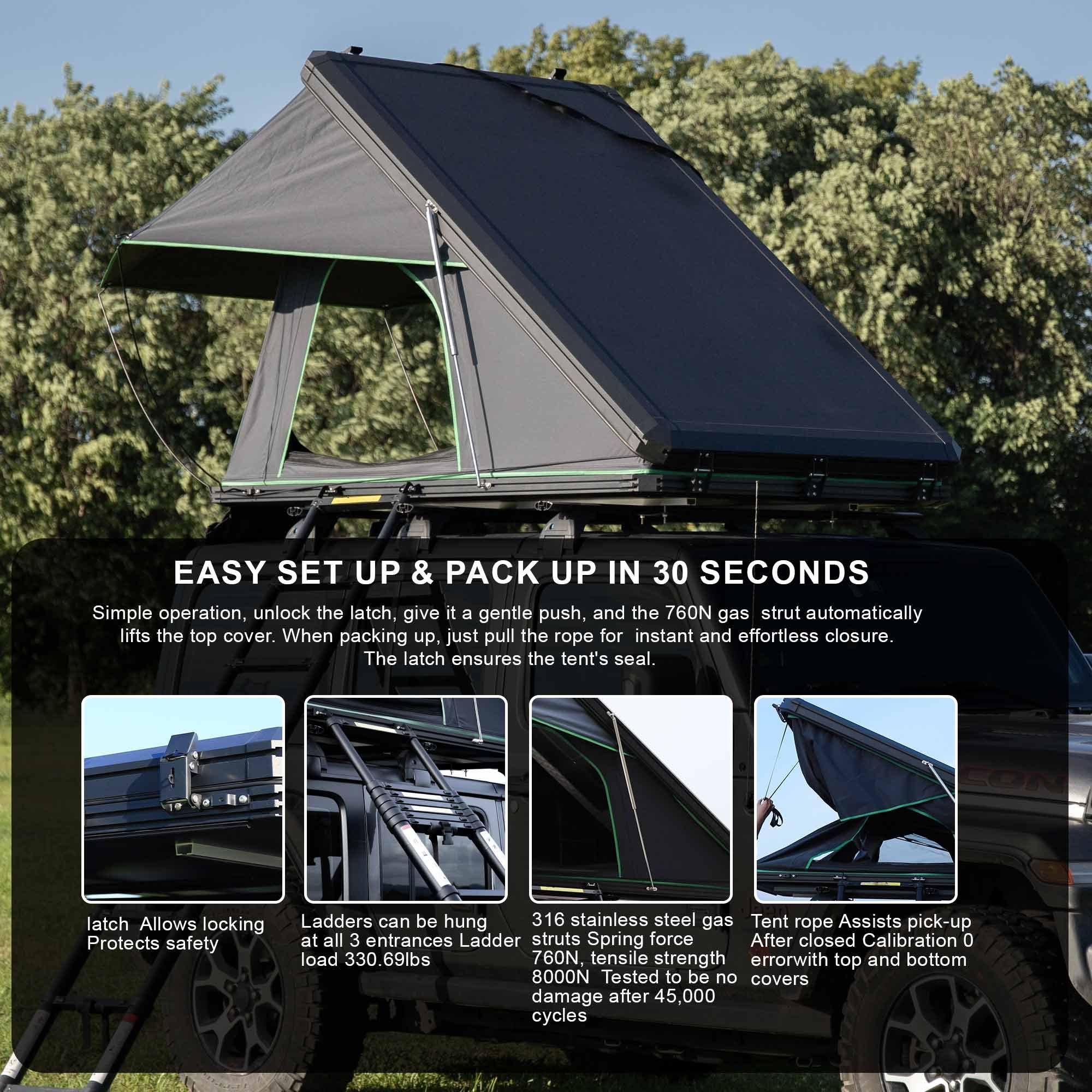 A ROOF TENT whose structure is entirely made of metal aluminum