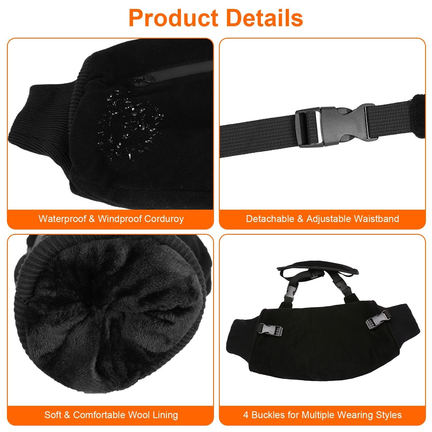 *3 Ways Of Wearing*:Lined with prmium wool,super soft & cozy. Come with an adjustable waistband,fit for most waist(27.2-49.2in). The 4 inbuilt buckles enable you to tie our hand warmer pouch around your waist,hang it on your neck or shoulder. Convenient and Comfortable. Machine Washable. All you need to do is to do is take out your items and the power bank before machine washing.