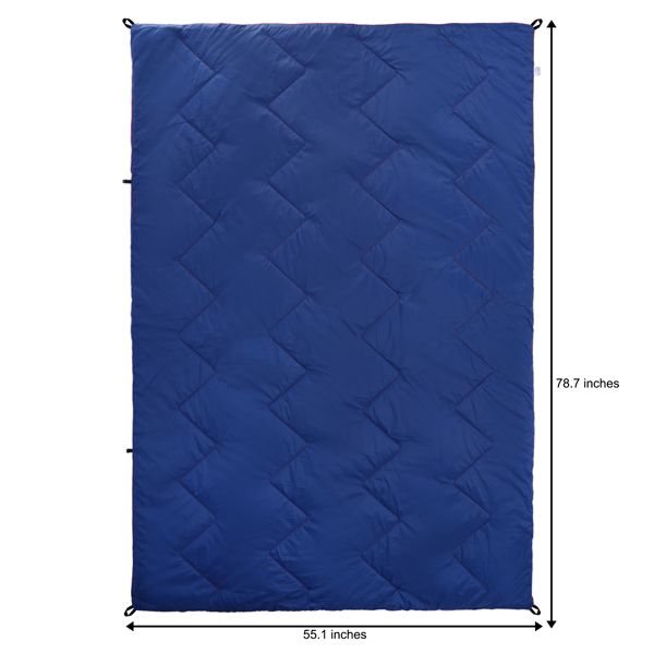 This outdoor blanket is a packable, portable, warm blanket that you can take just about anywhere. Made with ripstop nylon shell, this blanket is cozy and soft. It resists tears, snags, wind and pet hair, while a DWR coating making it water, odor, and stain-resistant. 8 functional snaps are designed to make it wearable as a poncho, or add extra warmth combined with the foot box cord. A perfect replacement for the sleeping bag. With the 4 corner loops, you could also stake the blankets into the ground for picnic.