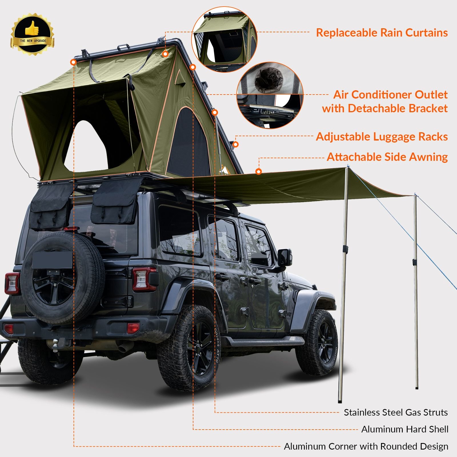 Explorer Plus Rooftop Tent Hardshell with Side Awning, Air Conditioner Outlet with Bracket, Luggage Racks&Replaceable Netting Rain Curtain