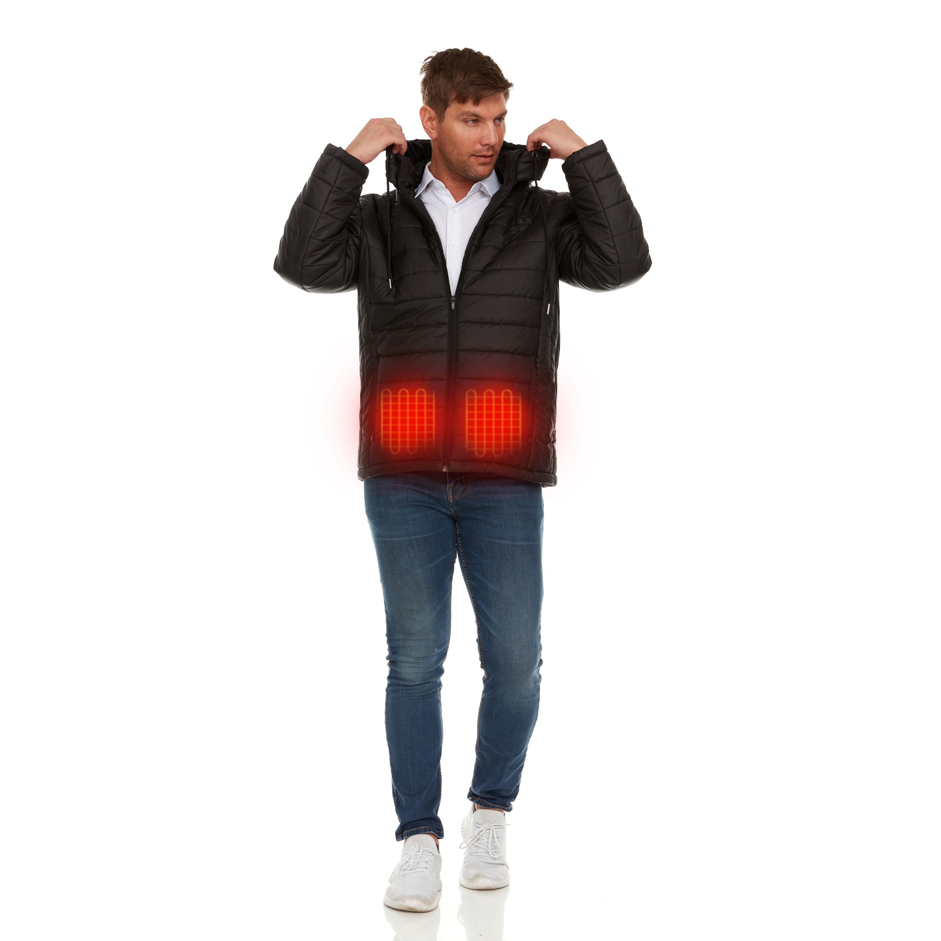 Experience Unprecedented Warmth: What sets HELIOS apart is its ingenious heating technology. Equipped with four independent heating panels, this coat ensures you stay comfortably warm in any chilly situation. You have complete control at your fingertips, as the heating panels can be adjusted both on the front and back or in isolated sections with just a simple click of a button. Say goodbye to shivers and welcome the warmth you deserve.