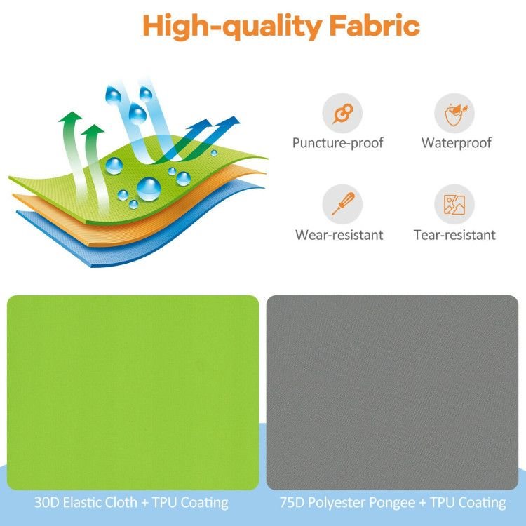 3.High-quality and Durable Material: Made of 30D elastic cloth and 75D polyester pongee with inner TPU coating, this camping sleeping mattress is puncture-proof water repellent, and wear-resistant. It can be used on various terrains, such as sand, grass, and even rugged ground.