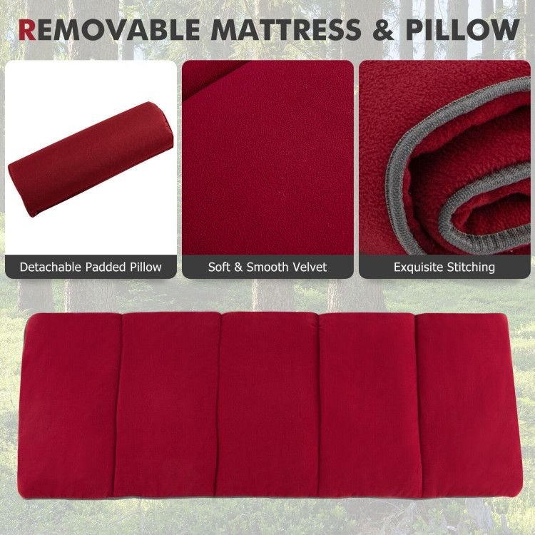 ● Ultra-Comfortable Design: The outdoor sleeping bed is designed with a removable mattress with soft and smooth velvet, which is breathable and comfortable, giving you a quality sleeping experience on cold days. Moreover, there also equips with a removable padded pillow to relax your neck and head.