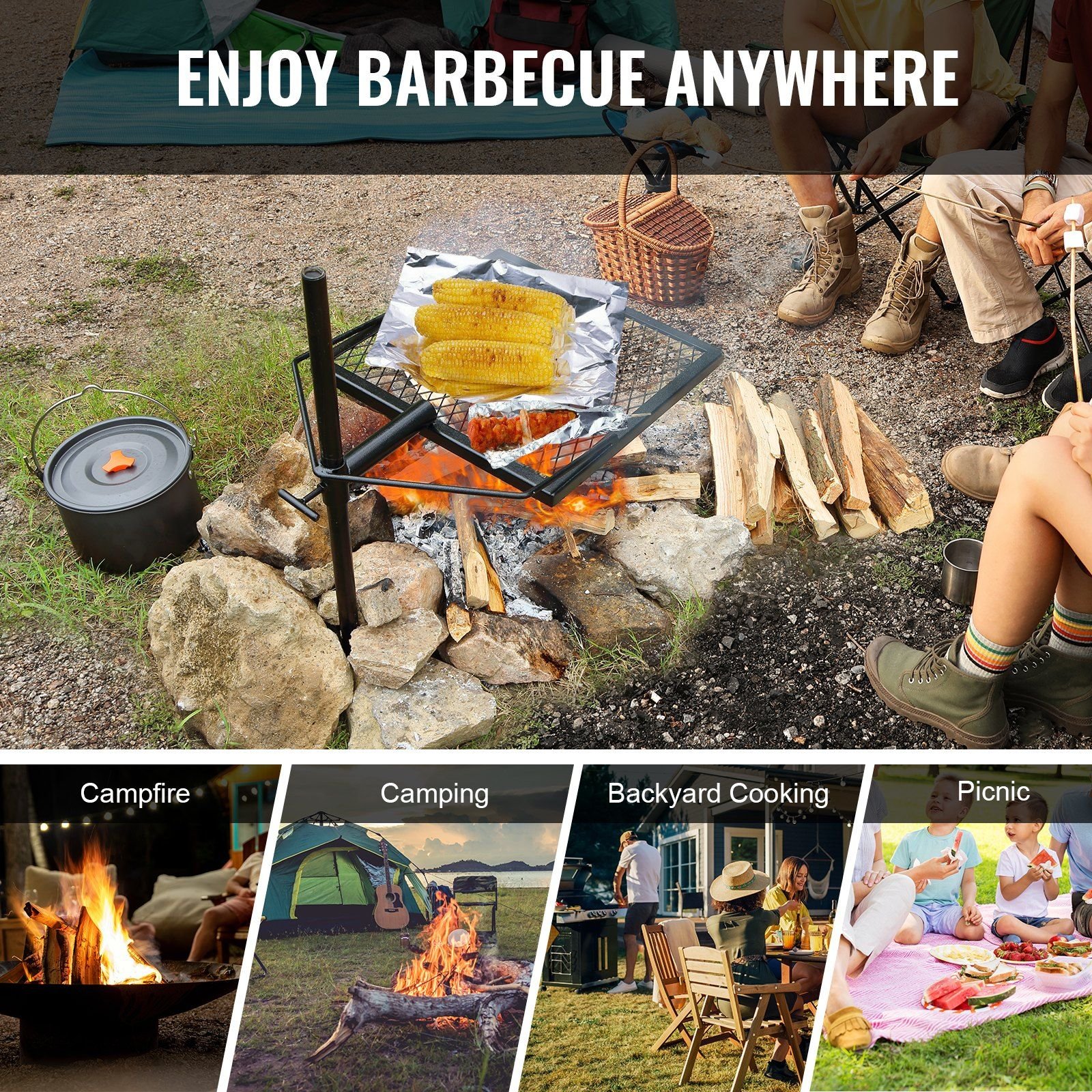 VEVOR Swivel Campfire Grill, Fire Pit Grill Grate over Fire Pits, Heavy Duty Steel Grill Grates, 360° Adjustable Open Fire Outdoor Cooking Equipment