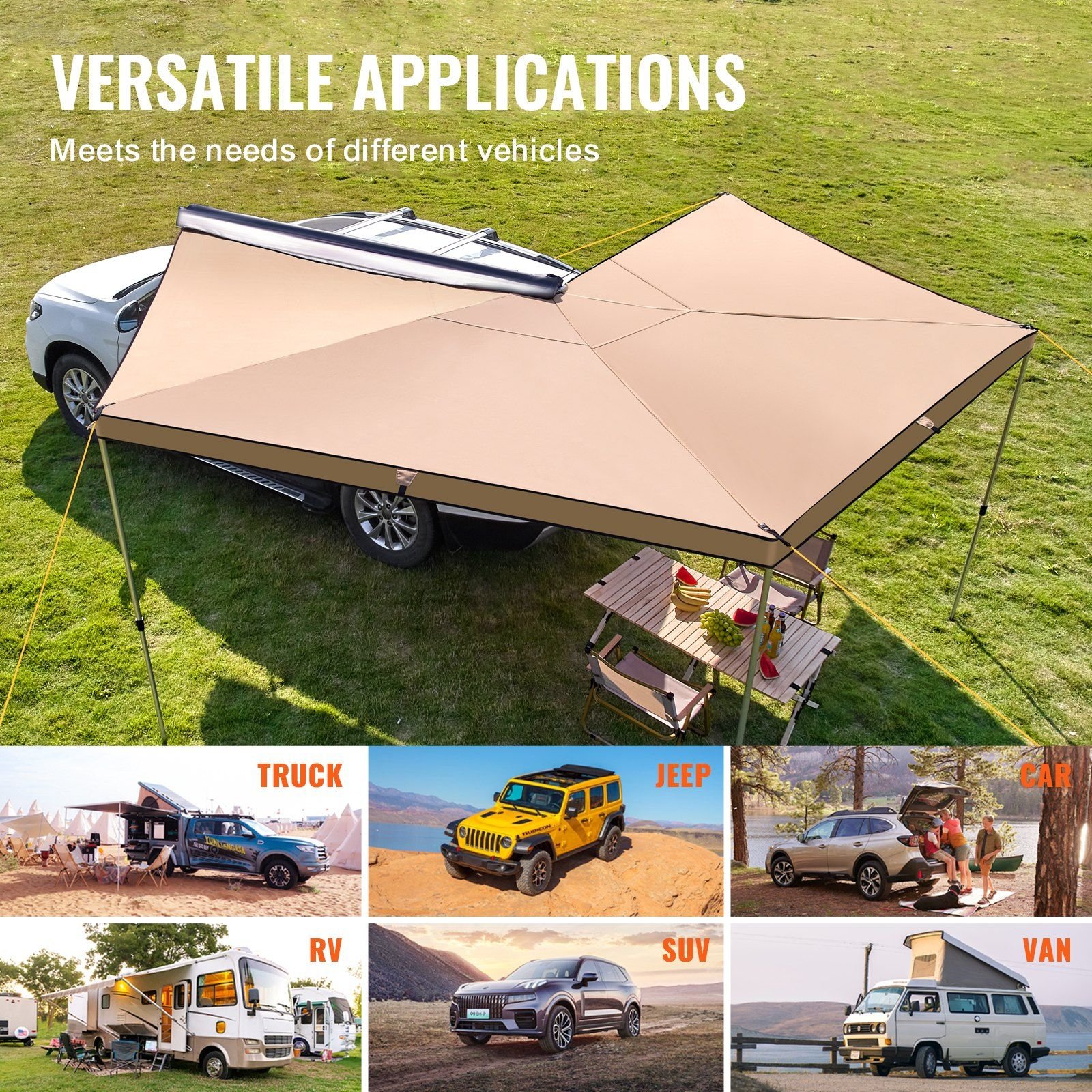 VEVOR Vehicle Awning 270 Degree, 8.2' Height Retractable Car Side Awning, PU3000mm UV50+ Car Awning with Waterproof Storage Bag, Suitable for Truck